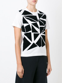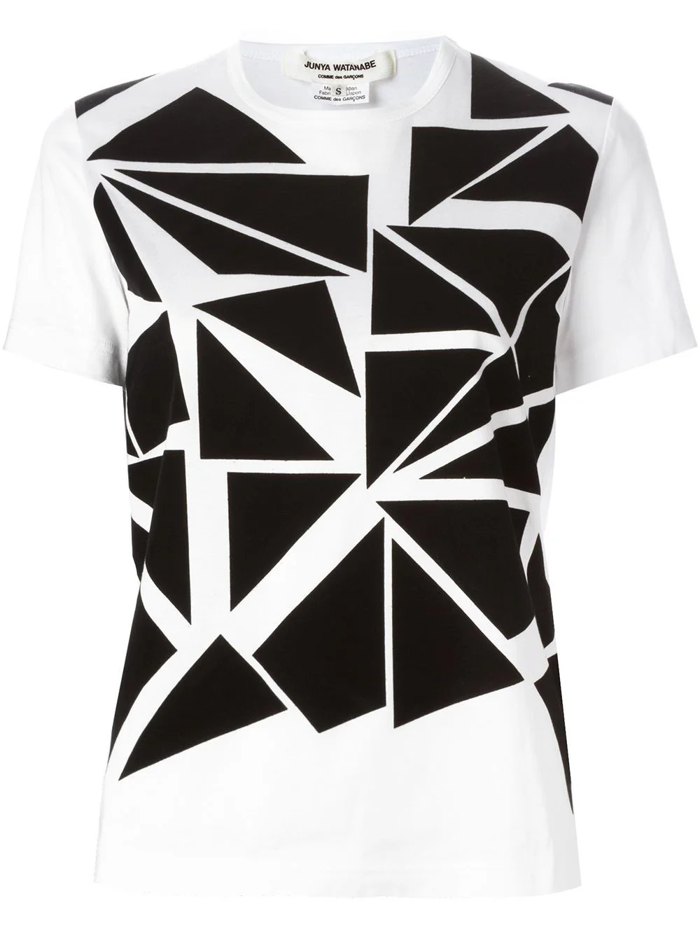printed T-shirt White cotton printed T-shirt from Junya Watanabe Comme Des Garcons. Imported Composition Cotton 100% Outer: Rayon 100% SIZE & FIT Model measurements Height 5 ft 9 in(1.76 m) Bust/Chest 31.49 in(80 cm) Hips 35.43 in(90 cm) Waist 23.62 in(60 cm) Washing instructions Hand Wash