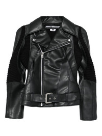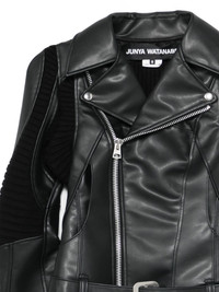 ribbed-panel faux-leather jacket Highlights - Black - Ribbed panels - Asymmetric zip fastening - Belted waist - Open back detail Imported Composition Polyurethane 100% Washing instructions Read Manufacturer Guidelines