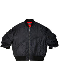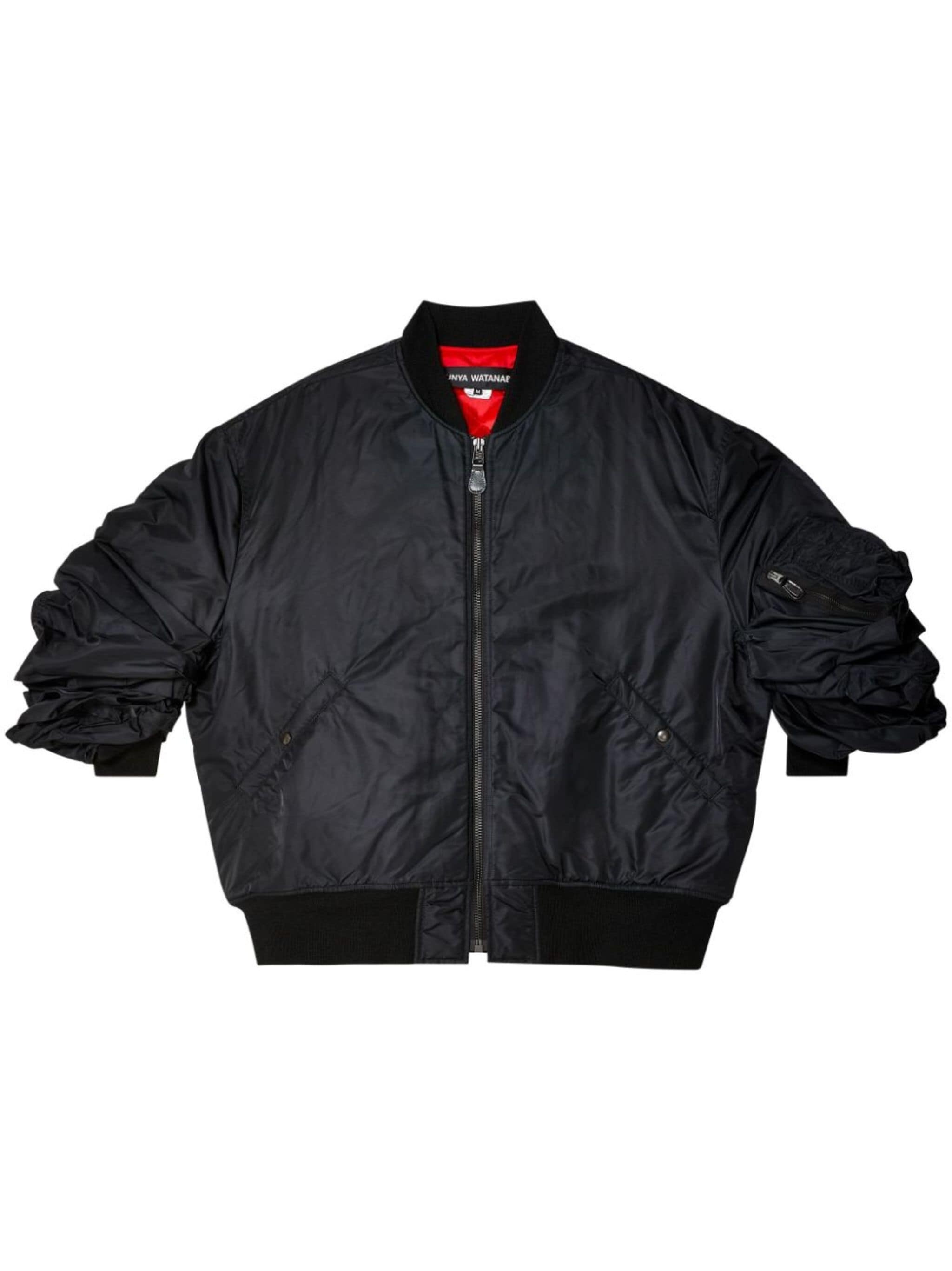 black lightweight construction short rolled sleeves front zip fastening ribbed trim two press-stud fastening side pockets sleeve zip pocket ribbed hem Size & Fit Model Measurements: Bust: 0cm Height: 0cm Hips: 0cm Waist: 0cm Fabric and Care Designer Style ID: JNJ010 Designer Colour: 1 BLACK Composition: Nylon 100% Washing instructions: Read Manufacturer Guidelines Made in Japan
