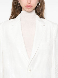 sequined blazer Highlights - White - Front button fastening - Buttoned cuffs - American rear vent - Two front flap pockets Imported Composition Outer: Sequin 100%, Polyester 100% Lining: Cupro 100% SIZE & FIT Model measurements Height 5 ft 10 in(1.79 m) Bust/Chest 35.43 in(90 cm) Hips 35.03 in(89 cm) Waist 25.19 in(64 cm) FittingInformation Designed for a relaxed fit, this piece allows for comfort and movement when worn The internal shoulder pads offer a structured shape Made from a midweight non-stretch fabric Washing instructions Dry Clean Only