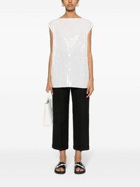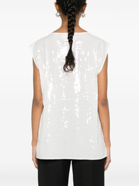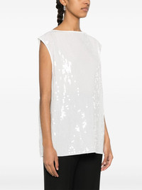 sequin-embellished top Highlights - White - Sequin embellishment - Round neck - Sleeveless - Straight hem Imported Composition Polyester 100% SIZE & FIT Model measurements Height 5 ft 9 in(1.76 m) Bust/Chest 31.1 in(79 cm) Hips 36.61 in(93 cm) Waist 24.8 in(63 cm) FittingInformation Designed to be unstructured, offering a loose fit throughout Made from a midweight non-stretch fabric This piece fits true to size – take your usual size