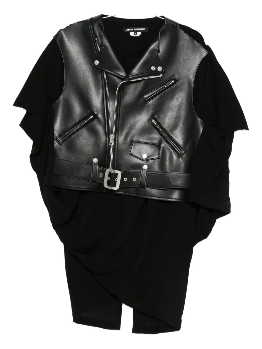 draped zip-fastening jacket Highlights - Black - Front zip front - Belted waist - Short sleeves Imported Composition Polyester 100%, Nylon 50%, Polyurethane 50% Washing instructions Read Manufacturer Guidelines