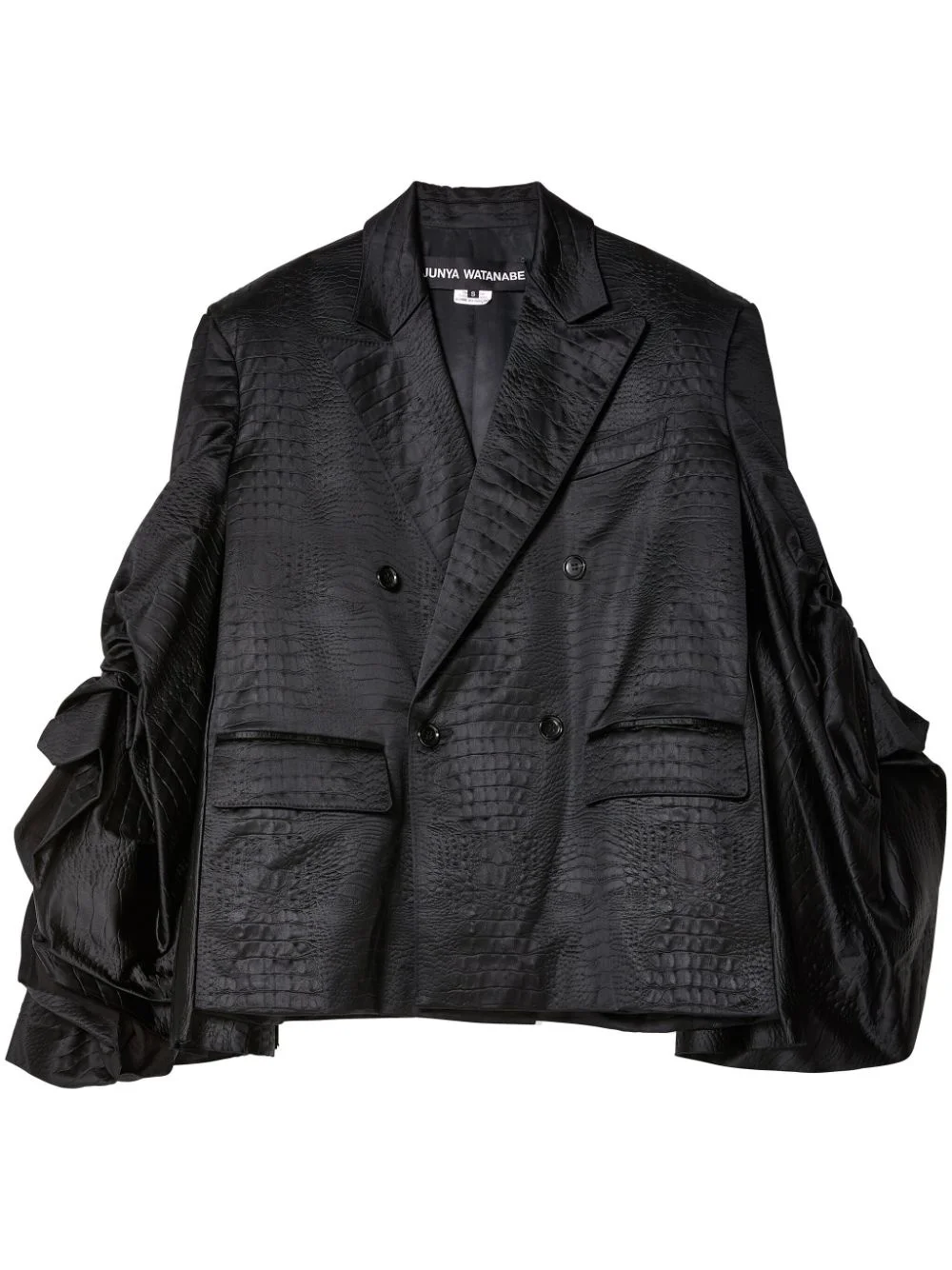 sleeveless oversized jacket Highlights - Black - Double-breasted button fastening - Embossed crocodile effect - Notched lapels - Draped detailing - Front flap pockets - Full lining - Straight hem Imported Composition Acetate 75%, Nylon 22%, Polyurethane 3% Washing instructions Read Manufacturer Guidelines