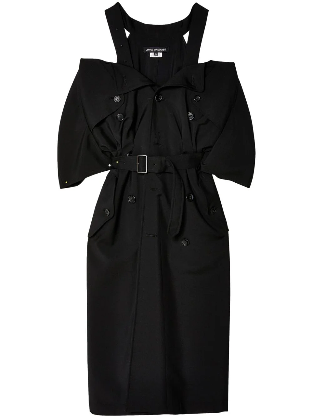trench midi dress Highlights - Black - Wool-mohair blend - Draped detailing - V-neck - Front button fastening - Belted waist - Cold-shoulder design - Short sleeves - Two side flap pockets - Mid-length Imported Composition Wool 85%, Mohair 15%