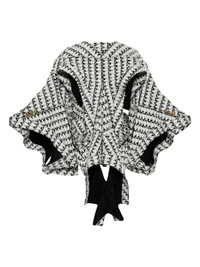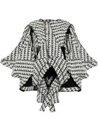 asymmetric tweed jacket Highlights - White/black - Tweed - Asymmetric design - Cape design - Cut-out detailing - Gold-tone buttons - Square neck - Front button fastening - Long sleeves - Asymmetric hem Imported Composition Outer: Nylon 36%, Rayon 33%, Wool 16%, Cotton 13%, Polyester 2% Lining: Polyester 100%