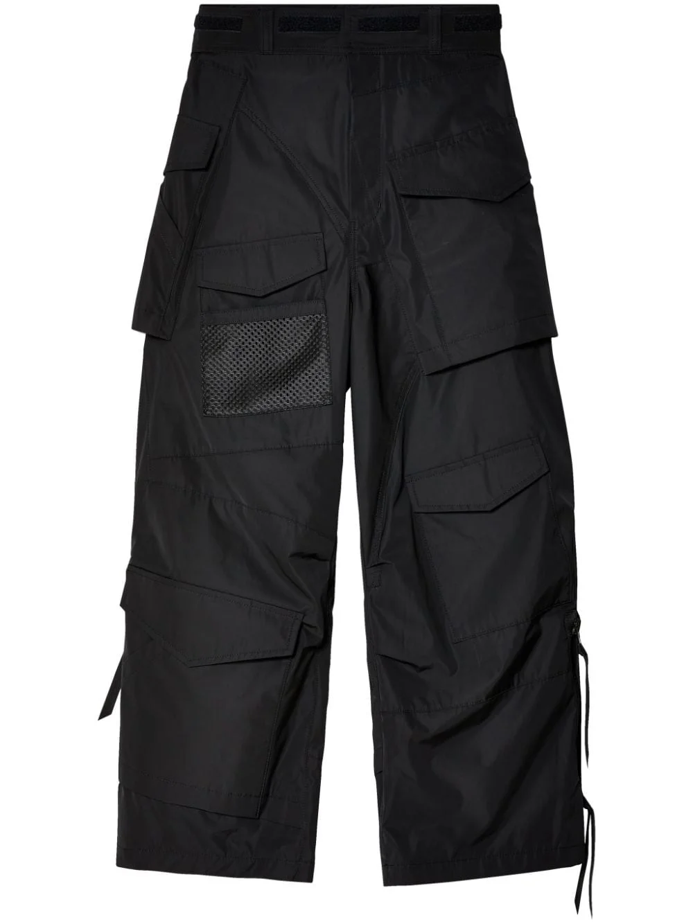 wide-leg cargo trousers Highlights - Black - Belt loops - Multiple cargo pockets - Mesh panelling - Wide leg Imported Composition Polyester 100% Washing instructions Read Manufacturer Guidelines