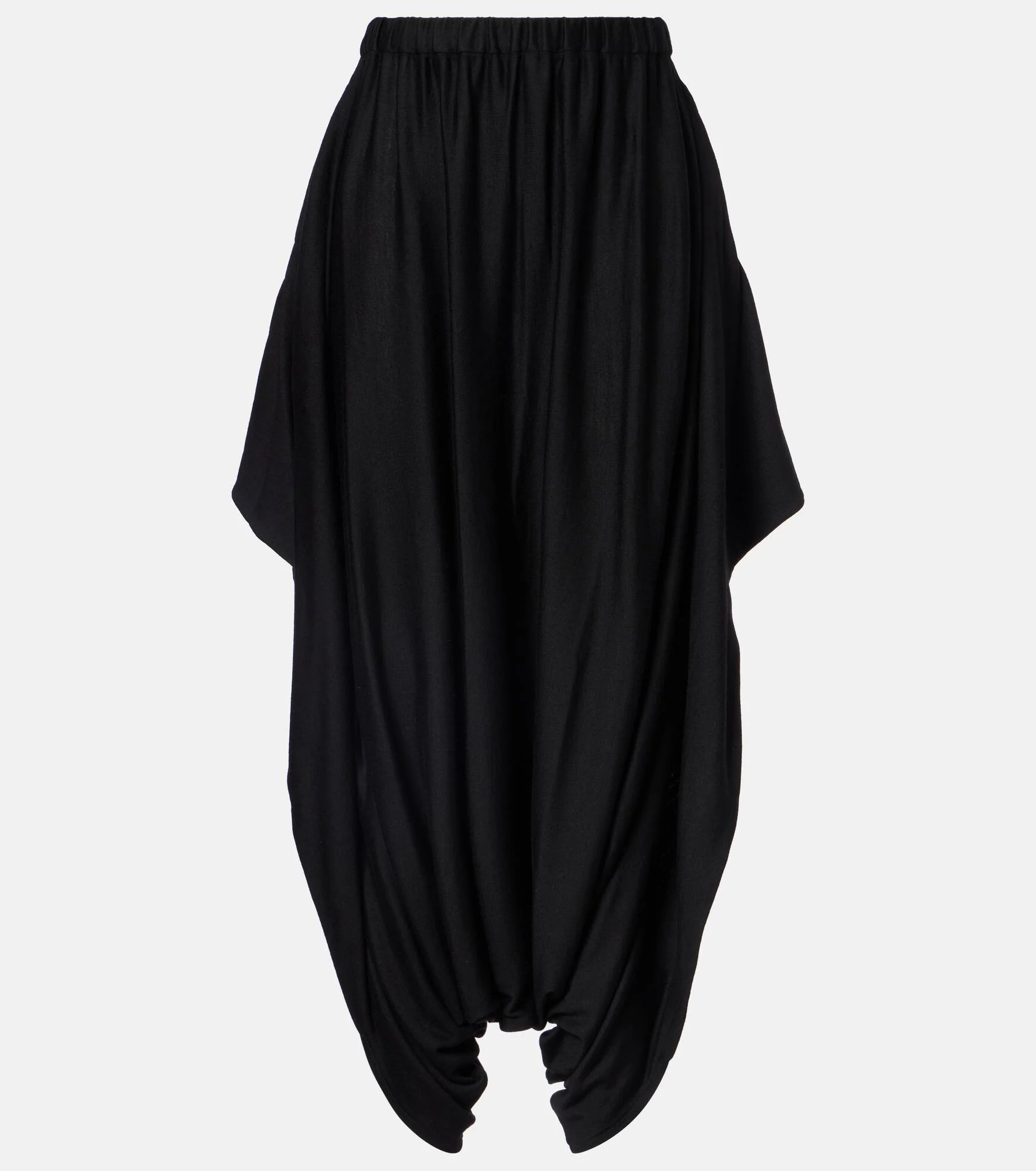 With experimentation at its core, Junya Watanabe creates avant-garde styles by manipulating fabrics and subverting classic codes. Crafted from wool, these pants are shaped to a high-rise, tapered-leg silhouette with an elasticated waistband and side slit pockets. Product Details - Material: 100% wool - Care instructions: dry clean - Made in Japan - Designer color name: Black - Item color: black - Elasticated waistband - Pockets: side slit pockets - Item number: P01100431 Size & Fit - True to size - Elasticated waist - Stretchy fabric - Tapered leg - High-waisted - The model seen in the picture is 178cm-5'10" and wearing a size XS