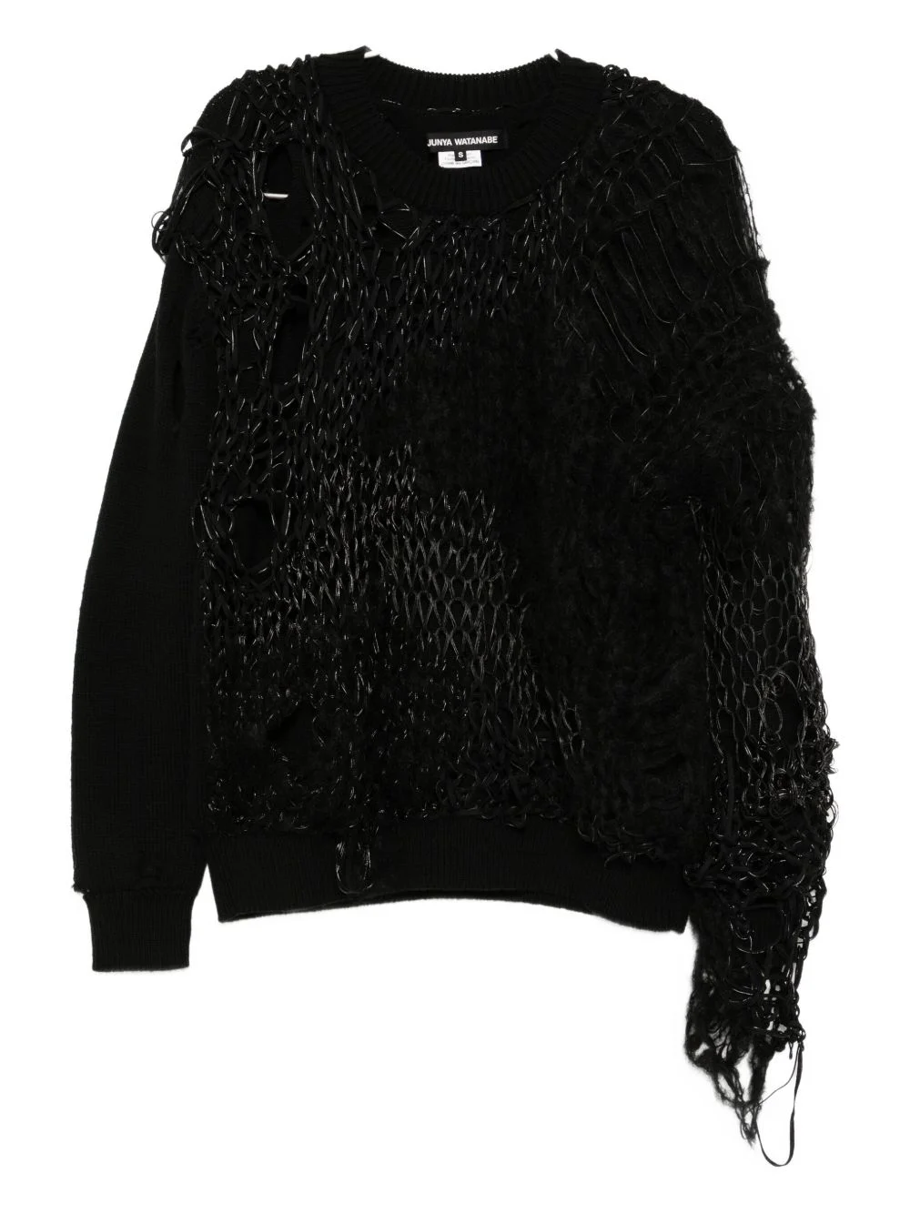 x Comme Des Garcons distressed jumper Highlights - Black - Crew neck - Long sleeves - Ribbed cuffs and hem Imported Composition Wool 88%, Nylon 7%, Cotton 3%, Polyurethane 2% Washing instructions Dry Clean Only