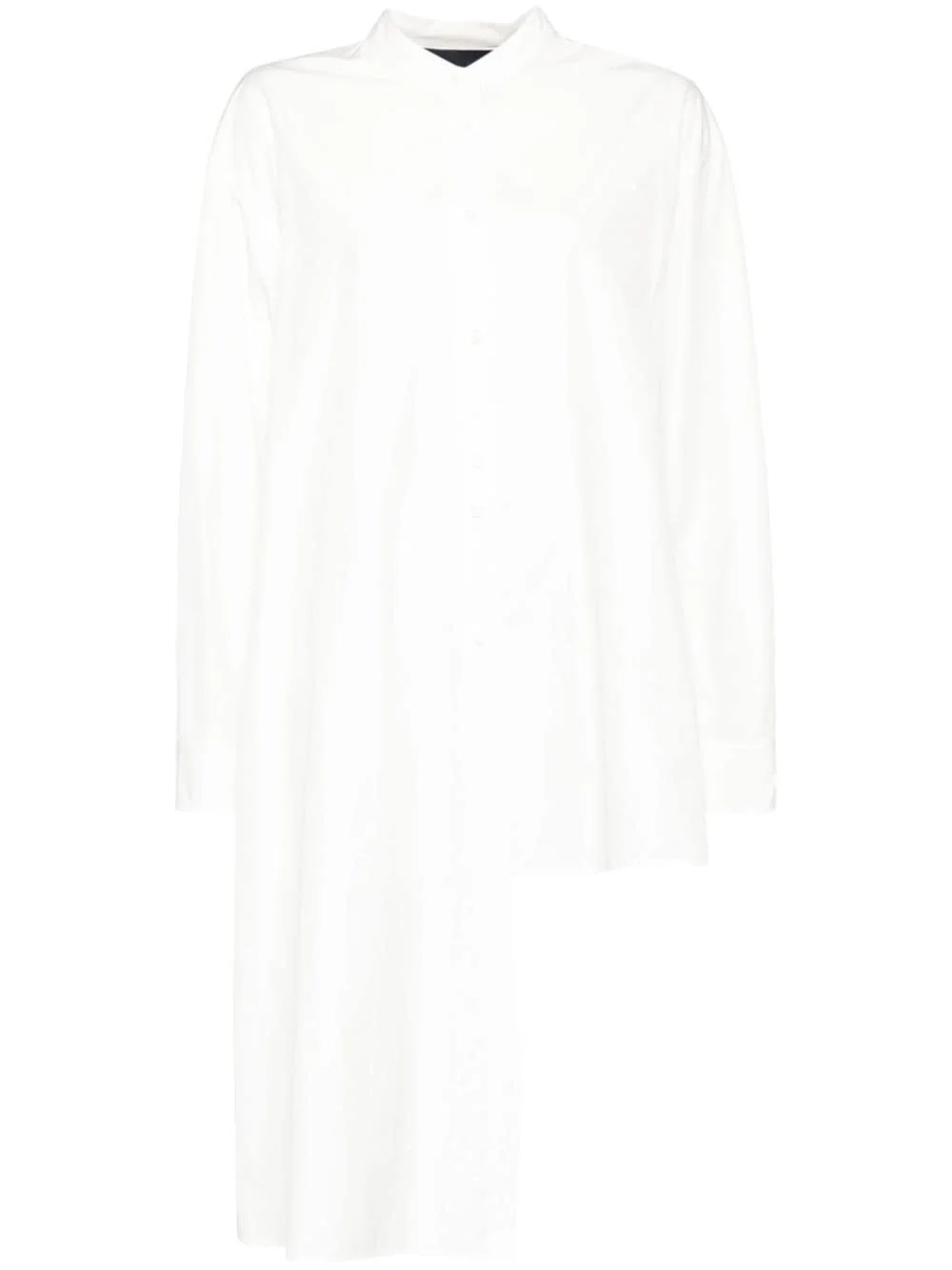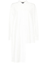asymmetric long-sleeves shirt Highlights - White - Front button fastening - Crew neck - Split detailing - Buttoned cuffs - Long sleeves - Buttoned central rear vent - Asymmetric hem Imported Composition Polyester 63%, Cotton 37%