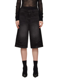 Black Patched Jersey Denim Shorts