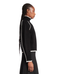 Juun.J Black Technical Fabric Sweatshirt. Black technical fabric, contrasting white trims, high neck, long sleeves, front zip closure. Kangaroo pocket, logo label on the chest. Regular fit. Vania is 179 cm and she is wearing size 36. DETAILS Model: JW625AW035 Composition: 66% Rayon, 34% Polyester Made in: KOREA Season: SS26