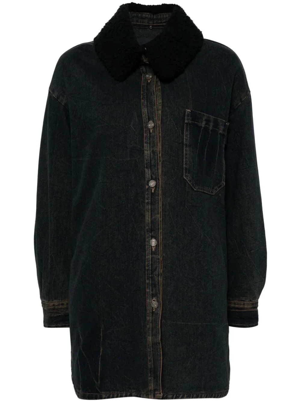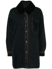 denim jacket Highlights - Indigo blue - Cotton blend - Front button fastening - Chest patch pocket - Contrasting trim - Long sleeves - Buttoned cuffs - Curved hem - Full lining Imported Composition Filling: Polyester 100% Outer: Cotton 92%, Rayon 8% Lining: Polyester 100%