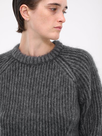 JUUN.J black sweater, knit construction, faded treatment, distressed detailing, crewneck, regular fit. Italian Sizing Model is 5'11" wearing size 36. Bust: 32" Waist: 24" Hips: 34"