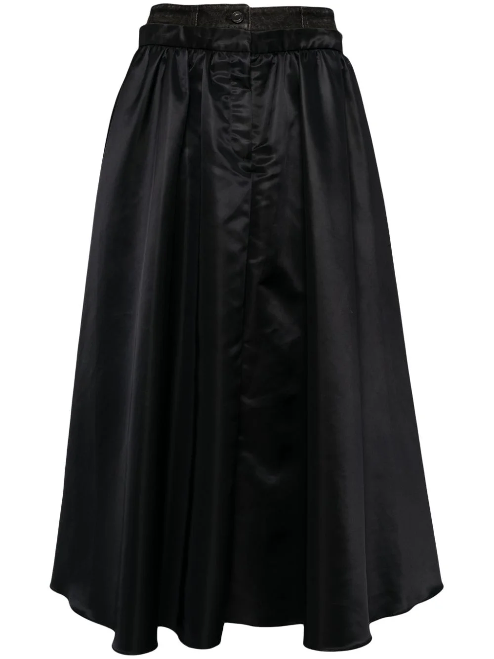 double waist skirt Highlights - Black - Double waistband - Front button and zip fastening - A-line skirt - Belt loops - Two side inset pockets - Curved hem - Full lining Imported Composition Lining: Polyester 57%, Viscose 43% Outer: Nylon 100% SIZE & FIT Measurement HIPS 39.37 in(100 cm) LENGTH 34.25 in(87 cm) WAIST 29.92 in(76 cm)