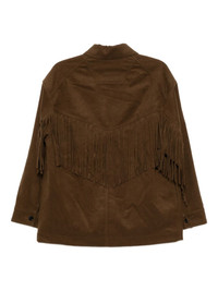 fringed suede jacket Highlights - Cedar brown - Front button fastening - Chest patch pocket - Buttoned cuffs Imported Composition Suede 100% Outer: Polyester 100% SIZE & FIT Measurement LENGTH 29.13 in(74 cm) WAIST 47.24 in(120 cm) BUST 46.45 in(118 cm) Shoulder Width 21.65 in(55 cm) Washing instructions Dry Clean Only