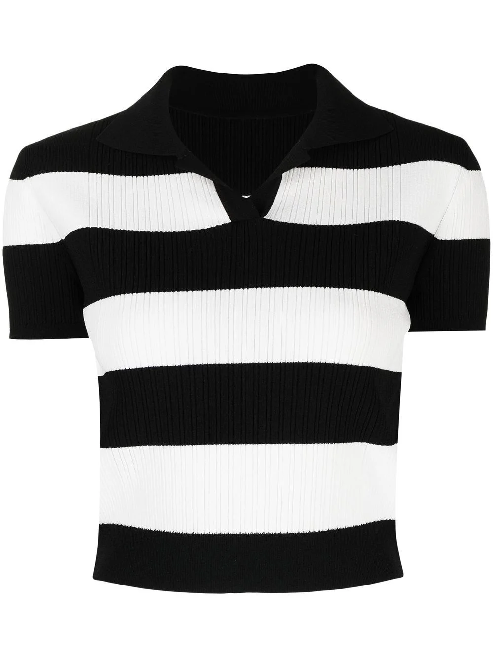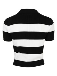 horizontal-stripe cropped T-shirt black/white horizontal stripe pattern knitted construction V-neck short sleeves straight hem cropped Imported Composition Body: Rayon 80%, Polyester 20%