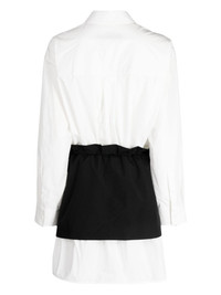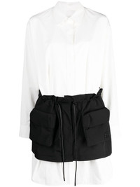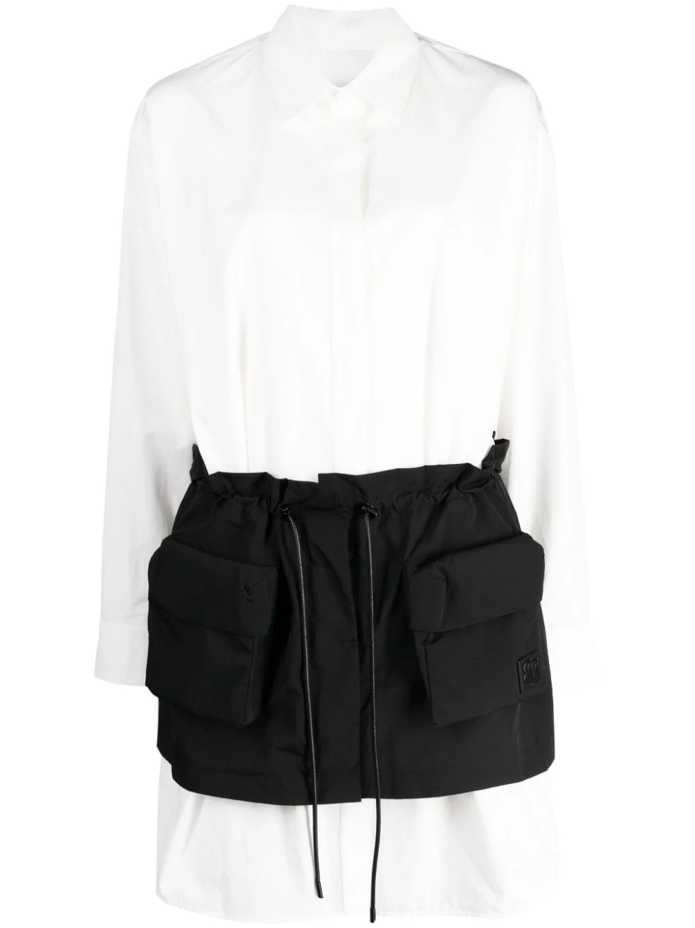 layered long-sleeve shirt Highlights - White/black - Logo patch to the front - Layered design - Elasticated drawstring waistband - Classic collar - Concealed front fastening - Long sleeves - Buttoned cuffs - Two front flap pockets Imported Composition Body: Cotton 42%, Polyester 40%, Nylon 18% Lining: Polyester 100% Inner: Nylon 100% Washing instructions Dry Clean Only