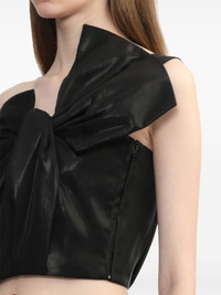 one-shoulder crop top Highlights - Black - One-shoulder - Cropped - Concealed side zip fastening - Bow detailing - Draped detailing - Straight hem Imported Composition Polyester 100% SIZE & FIT Measurement LENGTH 9.44 in(24 cm) BUST 29.92 in(76 cm)
