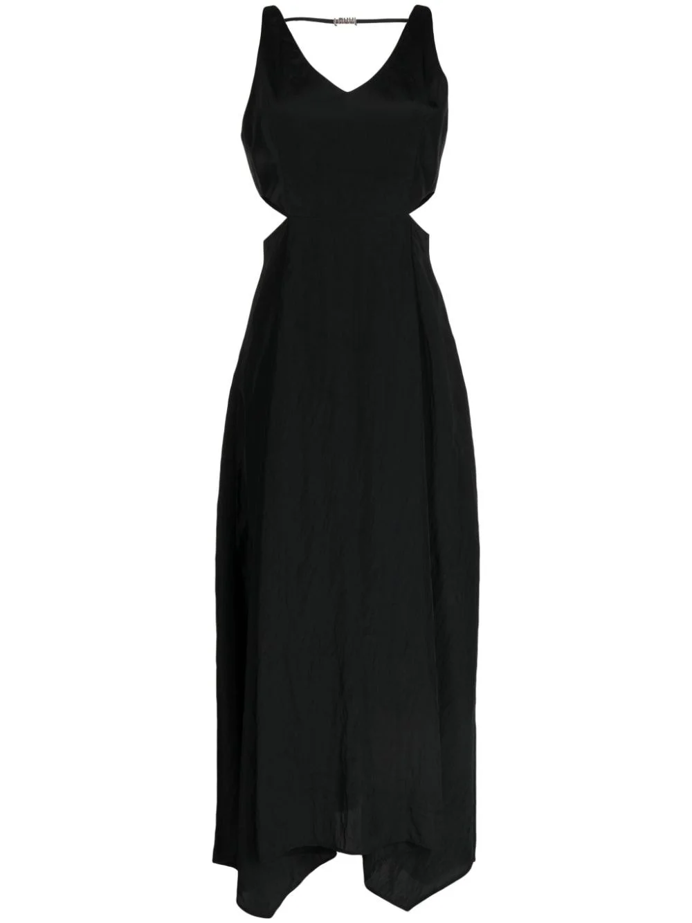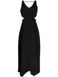 open-side V-neck dress Highlights - Black - Short side slits - Logo plaque - V-neck - Sleeveless - Straight hem Imported Composition Outer: Viscose 85%, Nylon 15% Lining: Polyester 100%
