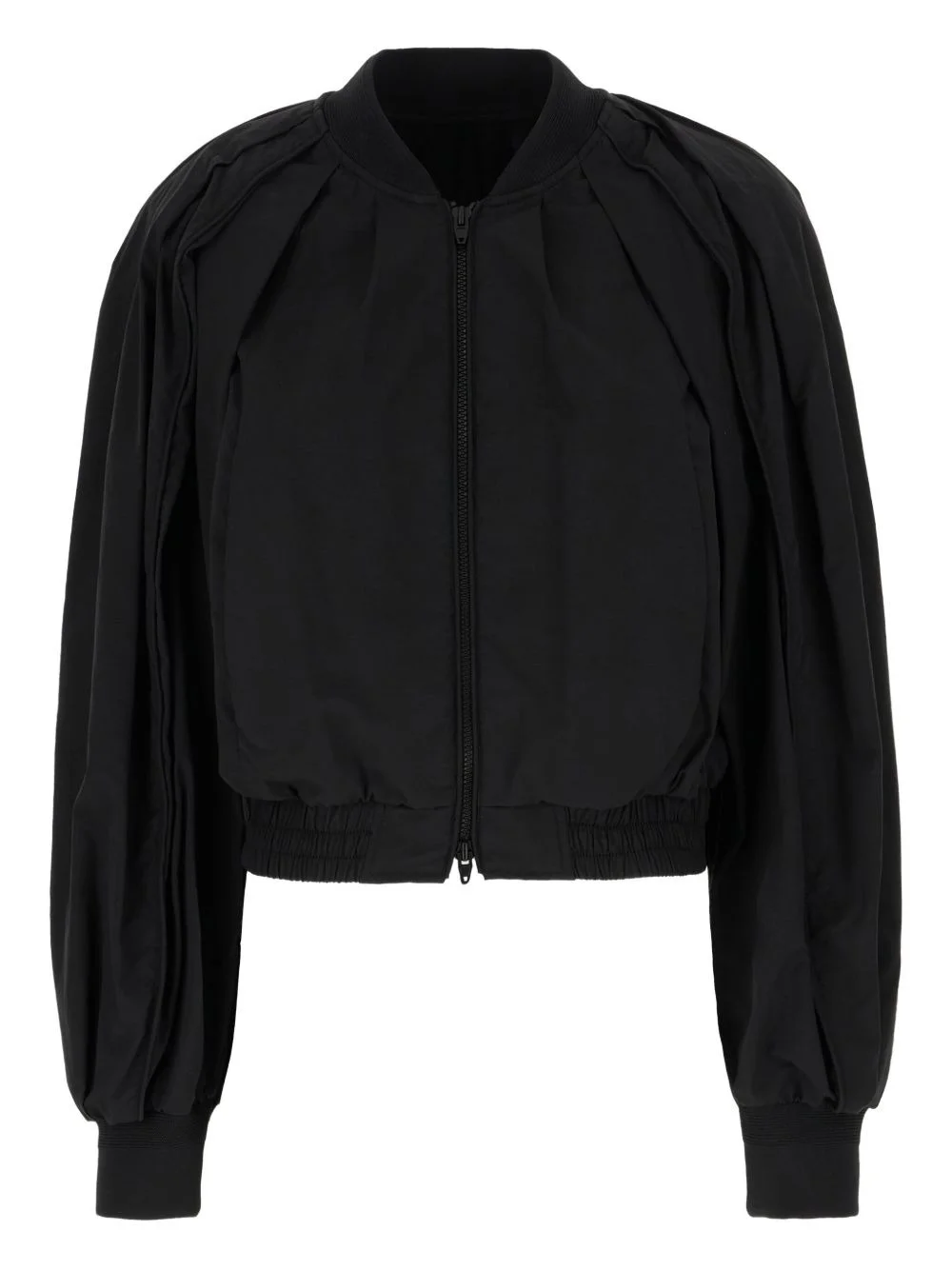 pleated balloon-sleeve bomber jacket Highlights - Black - Pleated shoulders - Balloon sleeves - Zip front - Elasticated hem Imported Composition Fabric 100% Washing instructions Read Manufacturer Guidelines