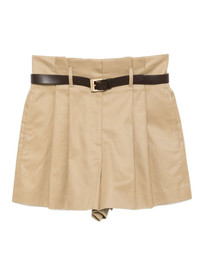 pleated shorts Highlights - Beige - Concealed front button, hook and zip fastening - Two side seam pockets - Two rear welt pockets - Detachable and adjustable waist belt Imported Composition Cotton 100% Washing instructions Dry Clean Only