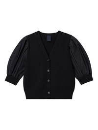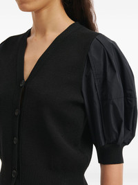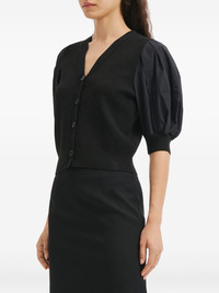 puff-sleeve button cardigan Highlights - Black - V-neck - Button fastening - Puff sleeves - Ribbed hem and cuffs Imported Composition Viscose 62%, Polyester 38% Washing instructions Read Manufacturer Guidelines