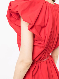 puff-sleeve gathered midi-dress red cotton-blend gathered neckline drawstring neck belted waist short puff sleeves mid-length Imported Composition Nylon 56%, Cotton 44% SIZE & FIT Model measurements Height 5 ft 11 in(1.8 m) Bust/Chest 28.34 in(72 cm) Hips 35.43 in(90 cm) Waist 23.62 in(60 cm) FittingInformation This piece fits true to size. We recommend you get your regular size Cut for a loose fit. Comes with an adjustable belt for a flexible fit at the waist Made with a mid-weight non-stretch fabric Washing instructions Dry Clean Only