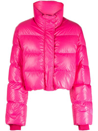 quilted cropped puffer jacket Highlights - Hot pink - Goose down - Quilted - Padded design - Logo patch at the sleeve - High neck - Concealed front fastening - Long sleeves - Ribbed cuffs - Straight hem - Cropped Imported Composition Body: Nylon 100% Filling: Goose Down 90%, Goose Feather 10% Lining: Polyester 100% Trims: Polyurethane 100%, Polyester 100%