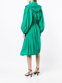 ruched hooded dress flared design classic hood high neck front zip fastening long wide sleeves fitted waistline mid-length Imported Composition Nylon 100% SIZE & FIT Model measurements Height 5 ft 11 in(1.8 m) Bust/Chest 28.34 in(72 cm) Hips 35.43 in(90 cm) Waist 23.62 in(60 cm) FittingInformation This piece fits true to size. We recommend you get your regular size Cut for a loose fit. Comes with an adjustable belt for a flexible fit at the waist Made with a lightweight non-stretch fabric Washing instructions Dry Clean Only
