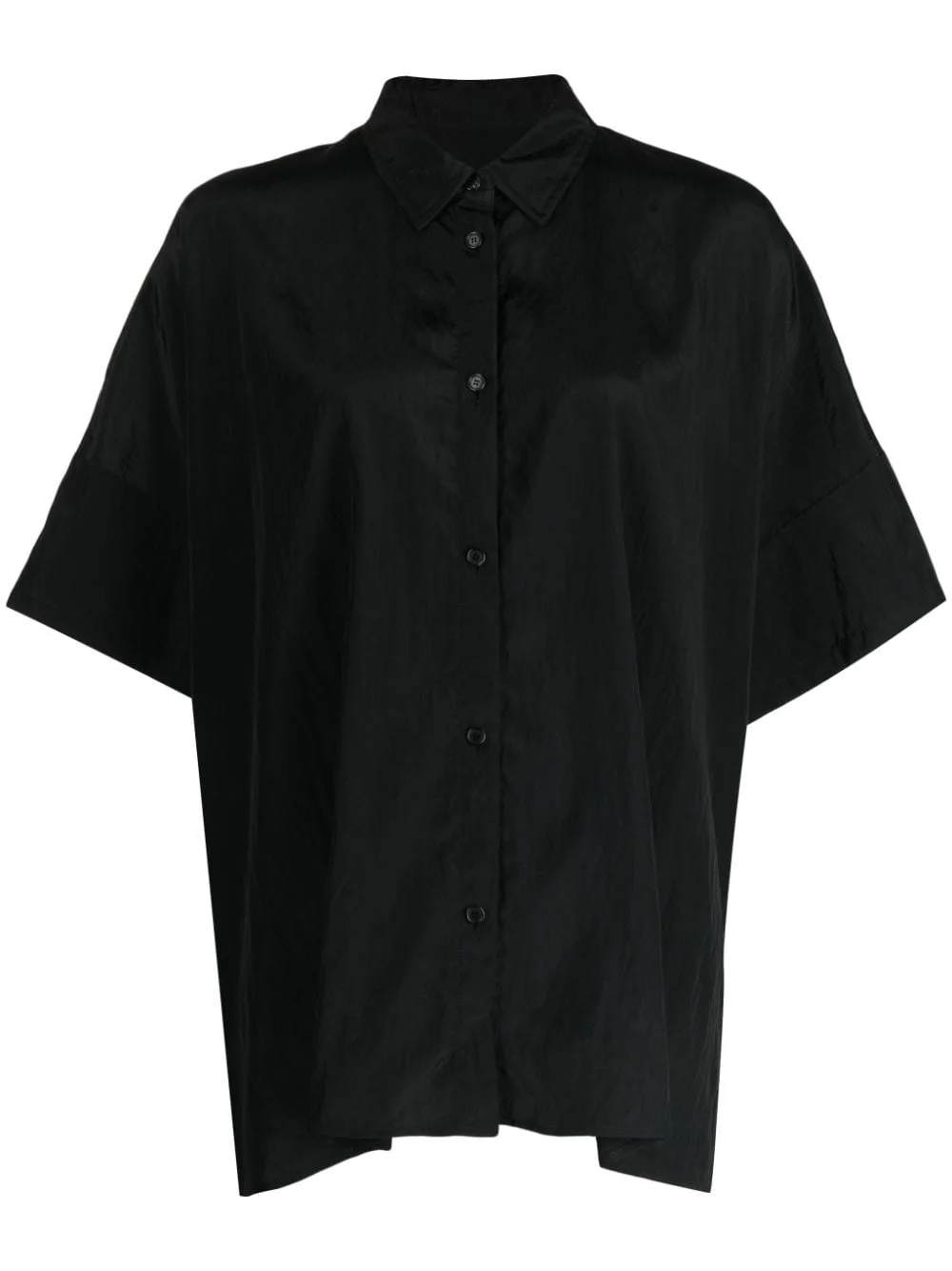short-sleeve buttoned shirt Highlights - Core black - Classic collar - Front button fastening - Short sleeves - Straight hem Imported Composition Viscose 85%, Nylon 15% Washing instructions Dry Clean Only