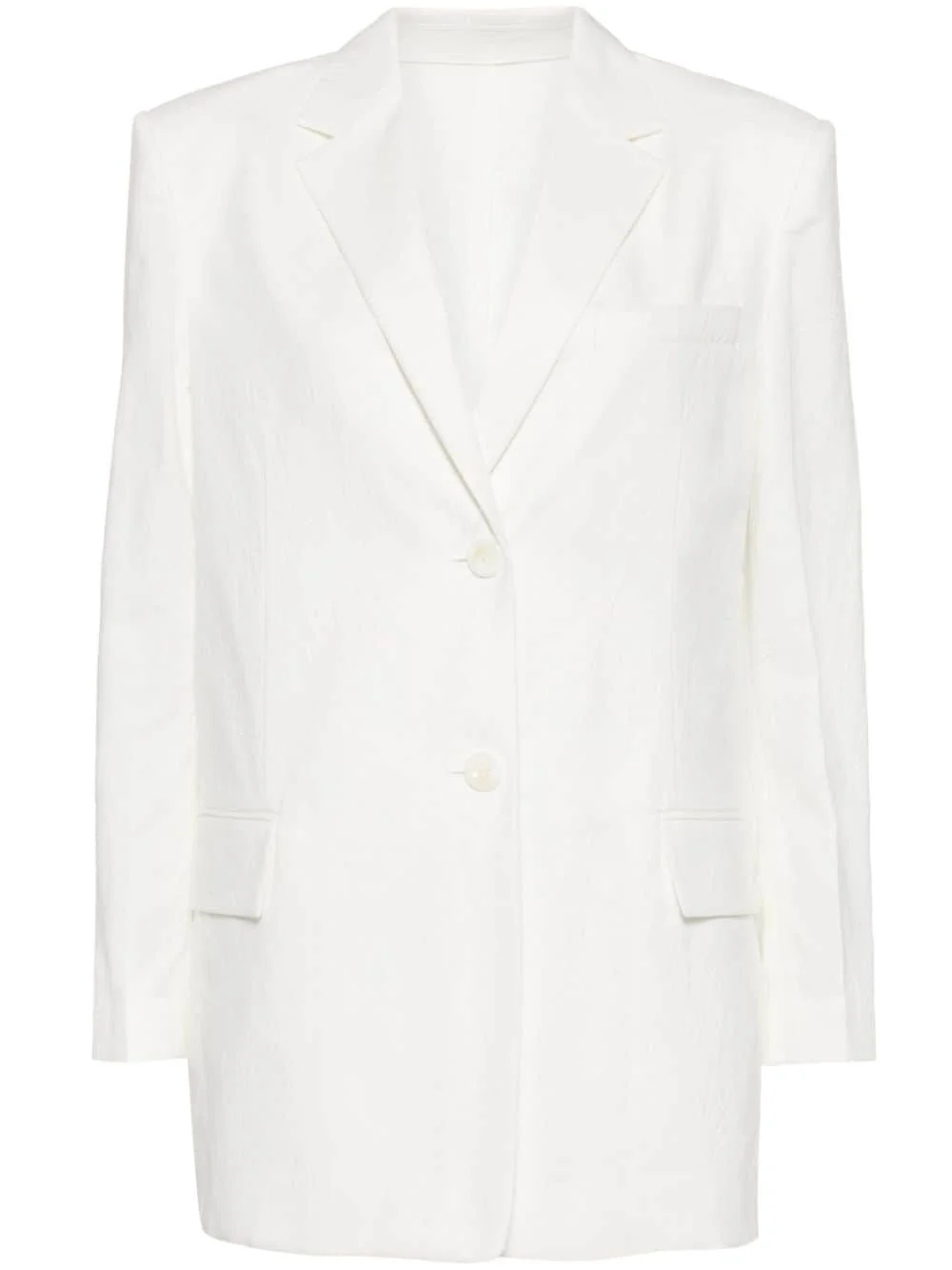 single-breasted cotton blazer Highlights - Ivory white - Cotton - Notched lapels - Front button fastening - Long sleeves - Buttoned cuffs - Chest welt pocket - Two side flap pockets - Straight hem Imported Composition Cotton 100%