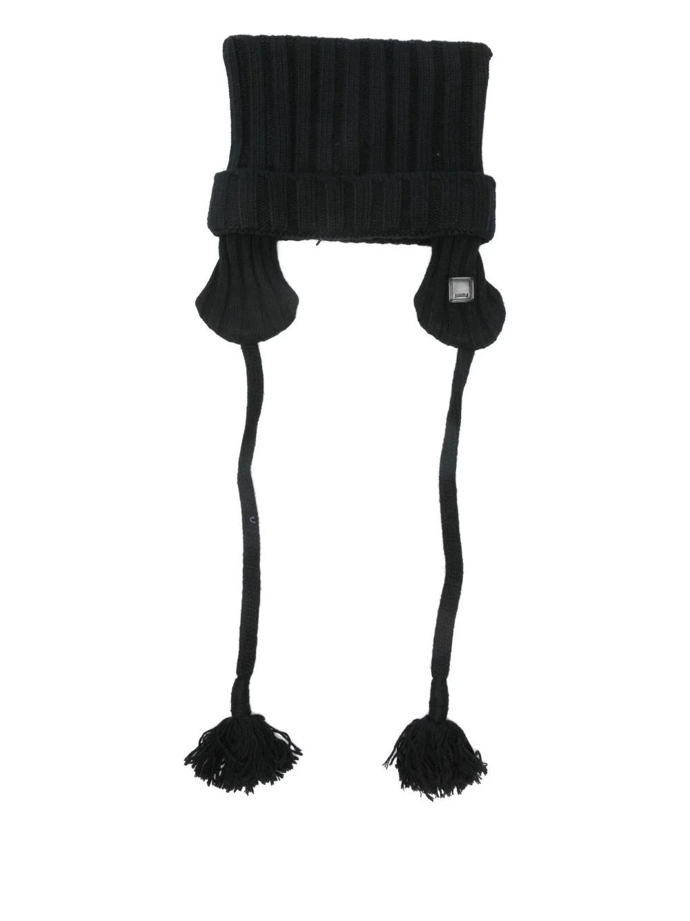 tassel-detail beanie Highlights - Black - Ribbed knit - Tassel detail - Ear flaps - Logo patch Imported Composition Fabric 100%
