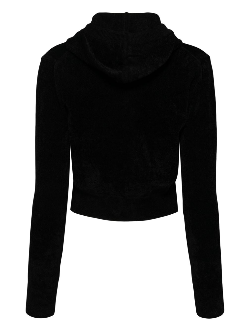 zip up hoodie Highlights - Black - Fleece texture - Front zip fastening - Drawstring hood - Cropped - Two front patch pockets - Long sleeves - Ribbed cuffs and hem Imported Composition Rayon 49%, Nylon 41%, Polyester 9%, Polyurethane 1%