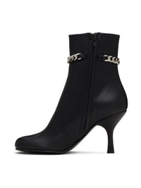 Ankle-high buffed leather boots in black. Curb chain with logo charms at ankle. · Zip closure at inner side · Covered stiletto heel with rubber injection · Leather sole · Silver-tone hardware · Heel: H3.5 in Supplier color: Black Upper: leather. Sole: leather, rubber. Made in Italy 232477F118000