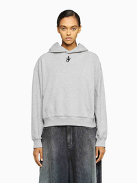 - Jersey hoodie with contrasting anchor chest embroidery - Dropped shoulder - Ribbed crew neckline, cuff and hem - Classic fit - take your usual size Additional Information - Colour: Grey Melange - Composition: 100% Cotton - Mid- weight fleece fabrication - Made in: Portugal - SKU: JW0216PG1719907