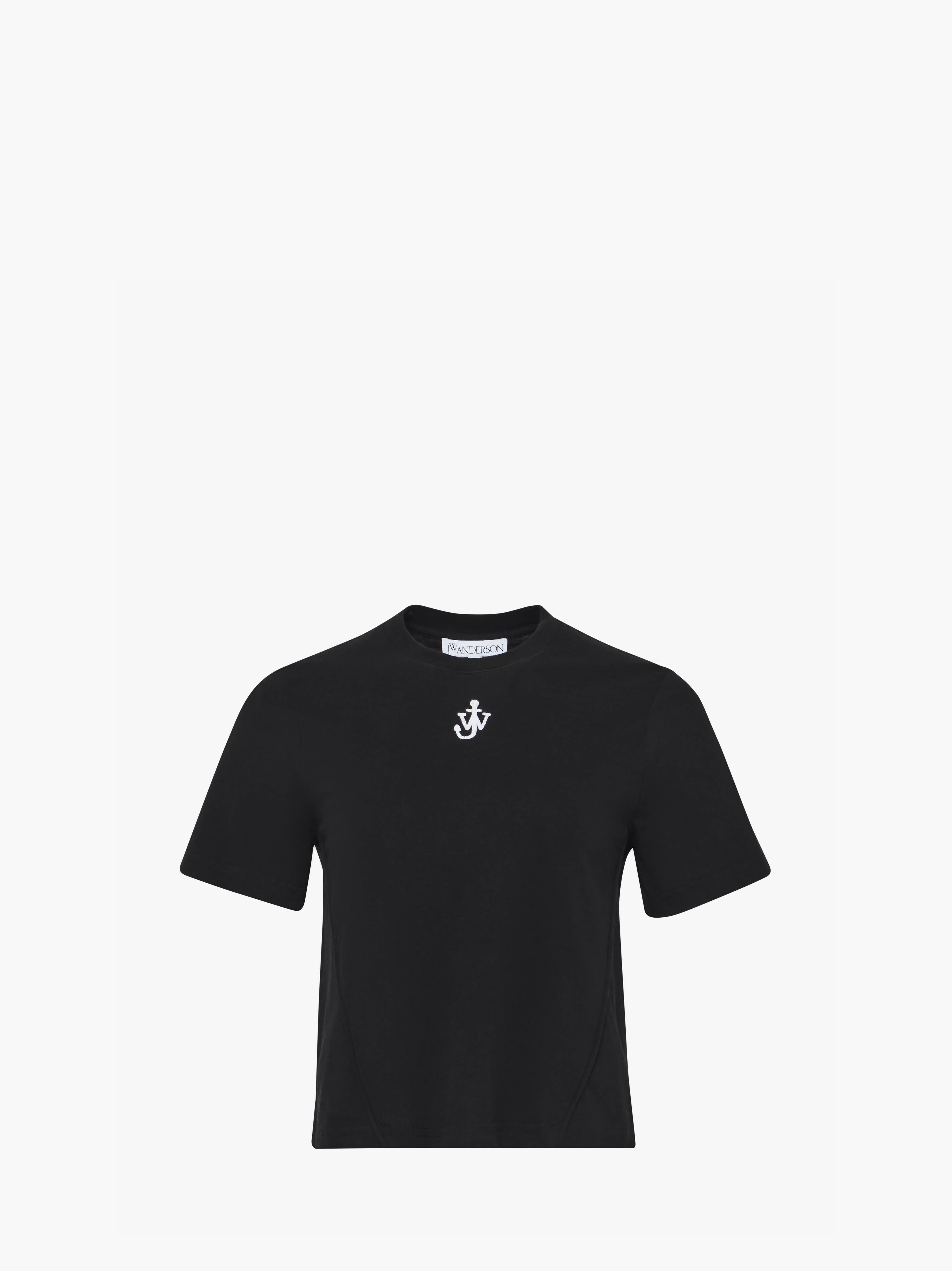 " * Short sleeve T-shirt with contrasting anchor embroidery on centre front- Crew neckline - Cropped boxy fit - take your usual size " Additional Information - Colour: Black - Composition: 100% Cotton - Light weight single jersey fabrication - Made in: Portugal - SKU: JT0259PG1715999