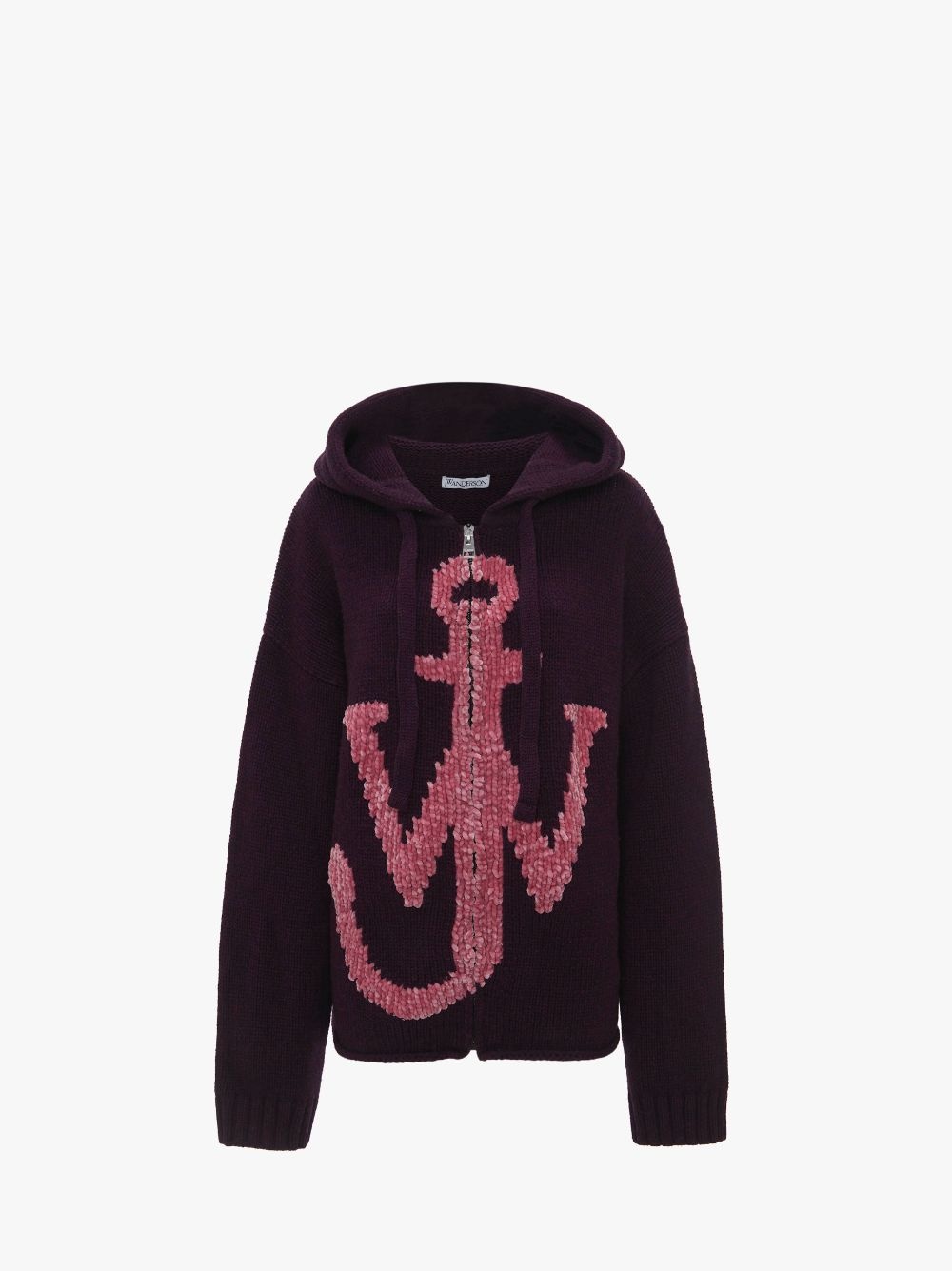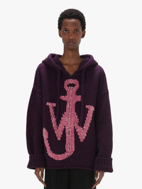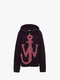 - Signature Oversized zip-front hoodie with anchor motif - Relaxed fit, with dropped shoulder detail - Centre front zip in metal finish - Ribbed cuffs - Oversized style take your usual size Additional Information - Colour: Plum - Composition - Main: 100% Merino Wool - Contrast: 100% Polyester - Made in China - Intarsia jacquard stitch