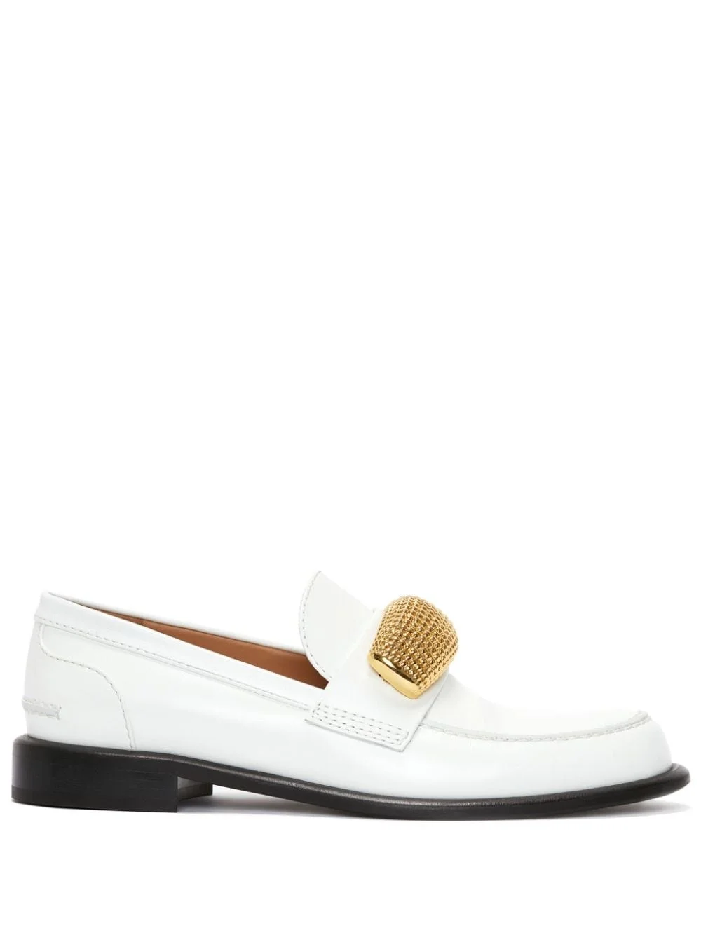applique-detail leather loafers Highlights - Black - Leather - Applique detail - Gold-tone hardware - Round toe - Slip-on style - Branded leather insole - Flat sole Made in Italy Composition Leather 100% SIZE & FIT Measurement HEEL 0.98 in(2.5 cm)