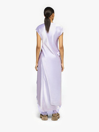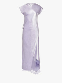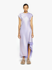 - Longline satin dress complete with asymmetric hemline - Tonal layered lace trim at hemline - Under skirt with adjustable tie fastening - Flap pocket on side - Zip closure at shoulder seam - Fitted silhouette, take your usual size Additional Information - Colour: Lilac - Composition: 74% Triacetate, 26% Polyester - Light-weight textured satin fabrication - Made in: China - SKU: DR0470PG1693730