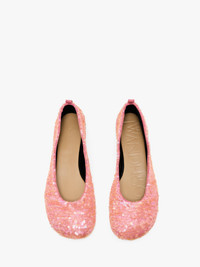 - All over sequin ballet pumps - Rounded toe - Nappa lining - Fits true to size, take your normal size Details - Colour: Bubblegum - Composition: 40% Polyester, 30% Cotton, 20% Split Grain Lamb Leather,10% Nylon - Lining:100% Split Grain Sheep Leather - Sole:100% Rubber - All Over Sequin Fabrication - Made in: Italy - SKU: BL0034FA0424340