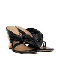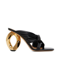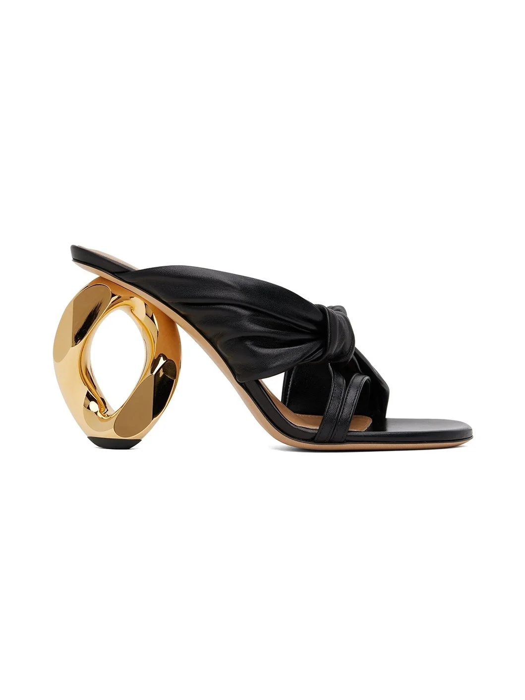 Buffed leather mules in black. · Open square toe · Knotted detailing at vamp · Padded leather footbed · Sculptural curb chain heel with rubber injection · Leather sole · Heel: H3.25" Supplier color: Black Leather. Made in Italy 242477F125000