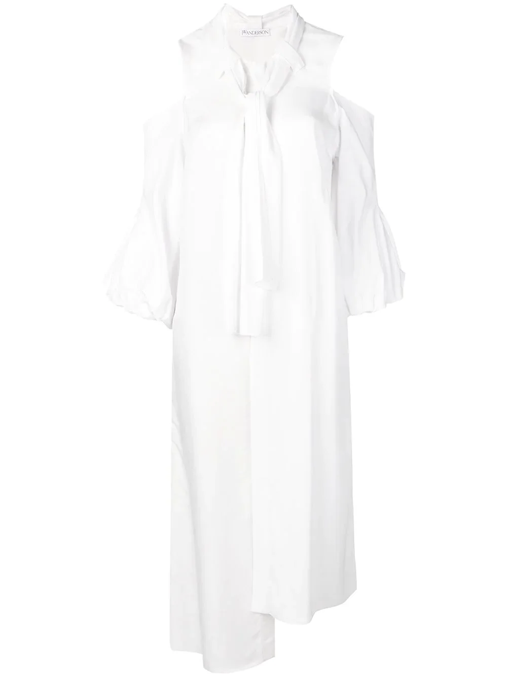 blush bow dress A little goes a long way... With this blush bow dress from JW Anderson you will easily be the most elegant girl in the room. Less is more. Featuring a pussy bow fastening, a cut out detail, three-quarter length sleeves, a concealed front fastening and a mid-length. Imported Composition Cupro 100%, Lyocell 100% Washing instructions Dry Clean Only