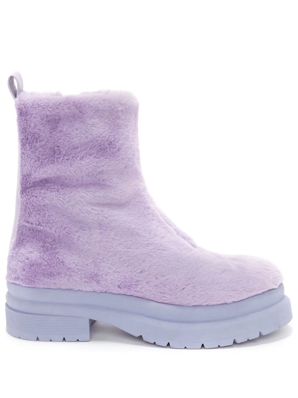 Ecofur ankle boots JW Anderson offers contemporary designs with a sophisticated appeal. Showcasing their minimalist approach, these fluffy ankle boots are presented in a lilac purple hue and free of any detail besides the chunky contrasting sole. Made in Italy Composition Outer: Polyamide 80%, Calf Leather 20% Sole: Rubber 100% Lining: Sheepskin 100% SIZE & FIT Measurement CIRCUMFERENCE 9.44 in(24 cm) HEEL 2.16 in(5.5 cm) HEIGHT 7.28 in(18.5 cm) PLATFORM 1.57 in(4 cm)