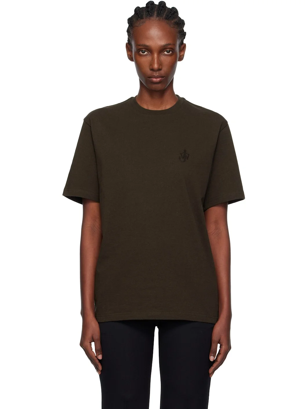 Cotton jersey T-shirt. · Rib-knit crewneck · Logo embroidered at chest Supplier color: Dark brown melange 100% cotton. Made in Portugal 252477F110003