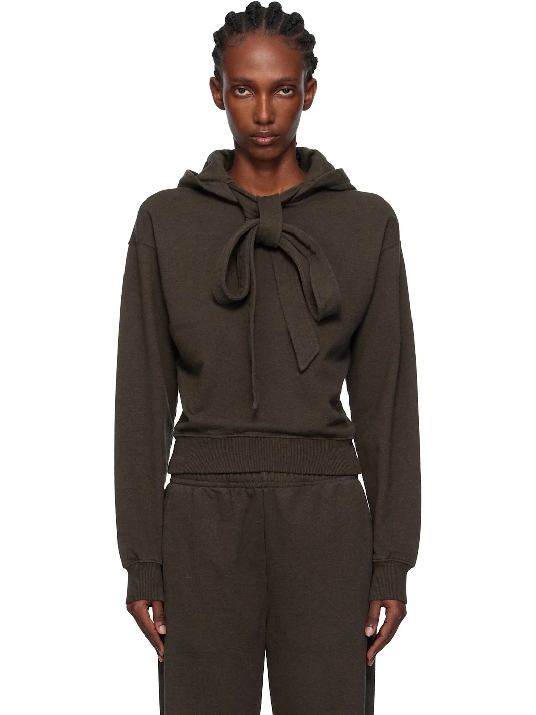 French terry hoodie. · Drawstring at hood · Rib-knit hem and cuffs · Dropped shoulders · Logo embroidered at back Supplier color: Dark brown melange Body: 100% cotton. Trim: 96% cotton, 4% elastane. Made in Portugal 252477F097003