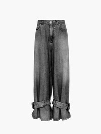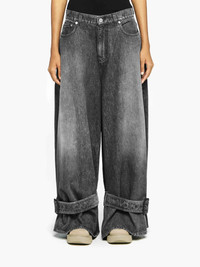 - Wide leg jeans with belted cuff detailing - Mid-rise waistline - Leather patch with logo embossed on the back - Oversized fit - take your usual size " Additional Information - Colour: Grey - Composition: 100% Cotton - Mid-weight stonewashed denim fabrication - Made in: Italy - SKU: DT0109PG1745929