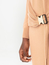 buckled-waist knit dress beige brown merino buckle detail at the waist round neck long sleeves mid-length Imported Composition Merino 100% SIZE & FIT Measurement HIPS 33.85 in(86 cm) LENGTH 42.51 in(108 cm) WAIST 29.13 in(74 cm)