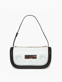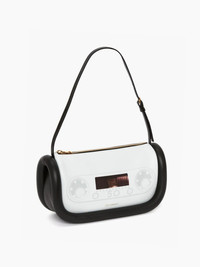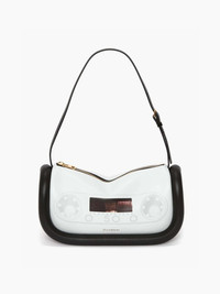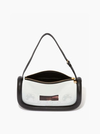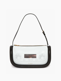 - Leather shoulder bag with iconic oversized padded tubular detail - JW Anderson logo on the front - Zip closure with branded zip puller - Inner slip pocket and nappa lining - Gold hardware - Can be worn as shoulder bag or as top handle bag Details - Colour: White/Black - Dimensions H: 15cm / W: 27.5cm / D: 9cm - Strap Drop: Long: 24cm / Short: 19cm - Outer: 80% Full Grain Lamb Leather, 20% Calf Leather - Lining: 100% Lamb Leather - Hardware: 100% Zamak - Made in Spain