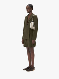 - Handmade crochet shoulder bag with thin adjustable leather shoulder strap - Oversized padded tubular detail - Leather hanging anchor charm - Zip closure with branded puller - Internal leather patch with blind embossed logo - Unlined - Silver hardware - Can be worn on the shoulder