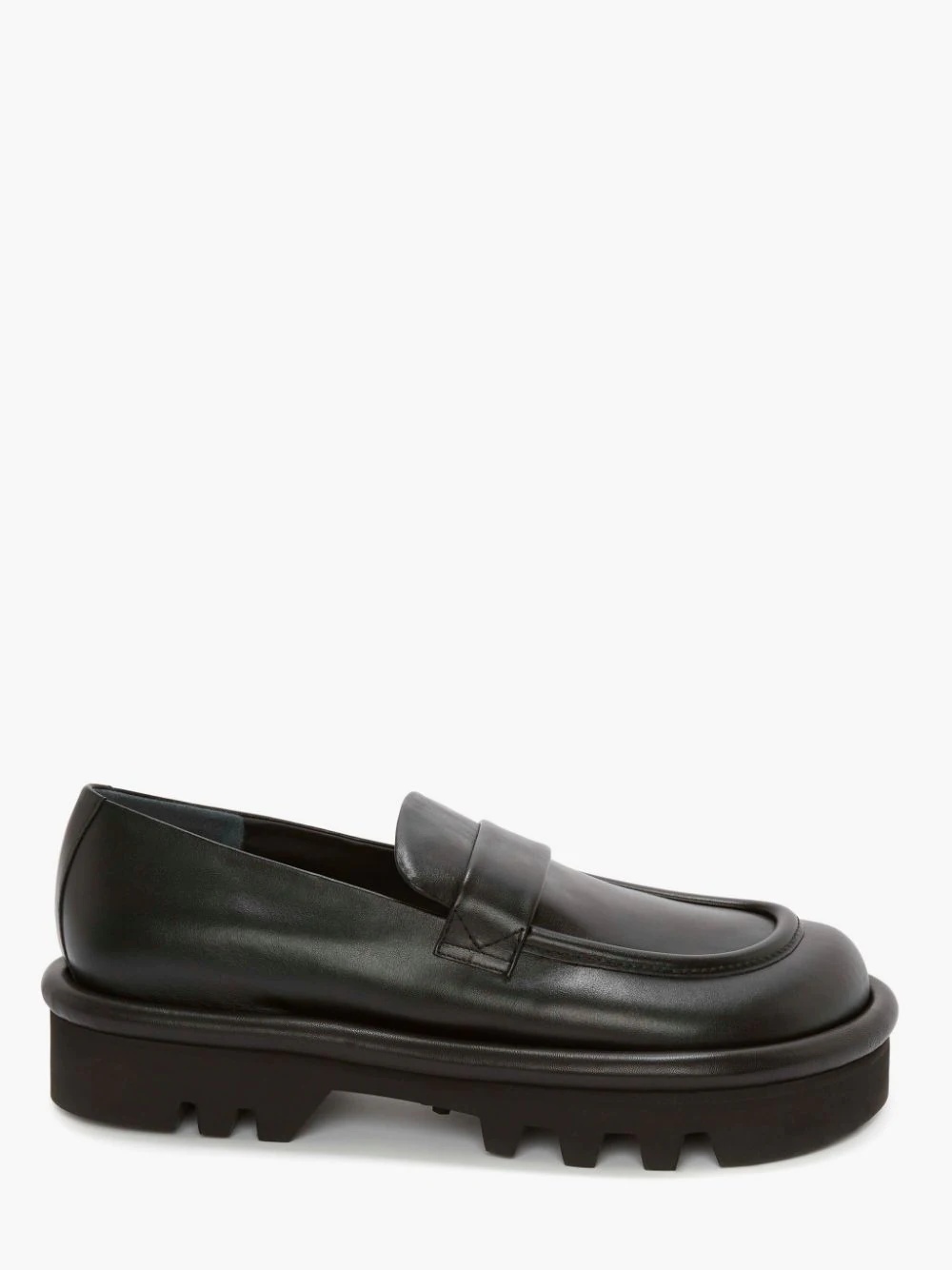 - Leather chunky loafer - Tubular detailing - Chunky ridged sole - Match with the bumper family - Fits true to size, take your normal size Details - Colour: Black - Outer: 80% Full Grain Cow Leather, 20% Polyester - Lining: 100% Split Sheep Leather - Sole: 100% Rubber - Made in Italy